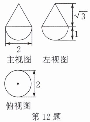 12. 一个几何体的三视图如图所示,则它的表面积为