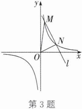 3. (2024·雅安)如图,在平面直角坐标系中,一次函数的图象 $l$ 与反比例函数 $y = \frac{k}{x}(k \neq 0)$ 的图象交于 $M(\frac{1}{2},4)$,$N(n,1)$ 两点.