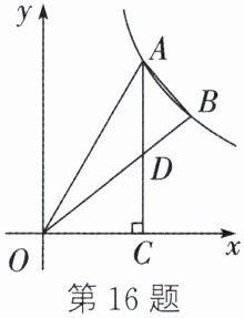16. 如图,在平面直角坐标系中,$\bigtriangleup OAB$的顶点$A$,$B$都在第一象限,反比例函数$y = \frac{k}{x}$在第一象限的图象经过$A$,$B$两点,$AC \perp x$轴于点$C$,$AC$与$OB$交于点$D$.若$\frac{AD}{CD} = \frac{5}{4}$,$\bigtriangleup ABD$的面积为$1$,则$k$的值为