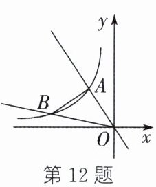 12. (2025·龙东地区)如图,在平面直角坐标系中,点$A$,$B$都在双曲线$y = \frac{k}{x}(k \neq 0)$在第二象限的一支上,且点$A$在点$B$的右侧,点$A$的横坐标为$- 1$,$\angle AOB = \angle ABO = 45°$,则$k$的值为 (