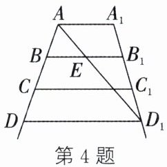 4. 如图所示为一架梯子的示意图,其中 AA₁//BB₁//CC₁//DD₁,AB = BC = CD,为了使其更加稳固,在点 A,D₁ 间加绑一条安全绳(线段 AD₁),AD₁ 与 BB₁ 交于点 E,AE = 0.4 m,则 AD₁ =