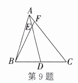 答案:9.$\frac{1}{7}$ 解析:如图,过点D作DH//BF,交AC于点H,则$\frac{CH}{HF}$=$\frac{CD}{DB}$.