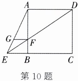 10. 如图,延长正方形 ABCD 的边 CB 至点 E,ED 与 AB 相交于点 F,过点 F 作 FG//BE,交 AE 于点 G. 求证:GF = BF.