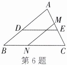 6. 如图,在△ABC 中,DE//BC,MN//AB,则图中与△ABC 相似的三角形有 (