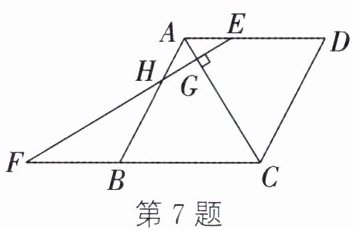 7. 如图,在菱形 ABCD 中,EF⊥AC 于点 G,分别交 AD 于点 E,交 CB 的延长线于点 F,EF 交 AB 于点 H.若 AH∶FB = 1∶2,则 AG∶GC 的值为 (