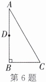 答案:6.D 解析:在$\triangle ABC$中,$\angle B=90^{\circ}$,$\angle A=30^{\circ}$,$BC=2$,$\therefore AC=2BC=4$,$\angle C=60^{\circ}.\because D$为$AB$的中点,$\therefore AD=\frac{1}{2}AB$.