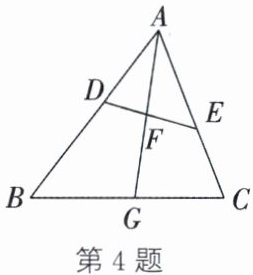 4. 如图,在△ABC 中,点 D,E 分别在边 AB,AC 上,∠AED = ∠B,线段 AG 分别交线段 DE,BC 于点 F,G,且$\frac {AD}{AC} = \frac {DF}{CG}$.