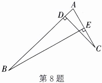 8. 如图,$CD⊥AB$,$BE⊥AC$,垂足分别是$D$,$E$.若$AE = EC = 2$,$AD = 1$,则$BD =$