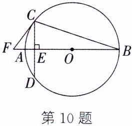 10. (2024·海门期中)如图,在⊙$O$中,$AB$是直径,$CD$是弦,且$AB⊥CD$,垂足为$E$,$AB = 20$,$CD = 12$,在$BA$的延长线上取一点$F$,连接$CF$,使$∠FCD = 2∠B$.