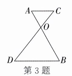 3. (2024·云南)如图,AB 与 CD 交于点 O,且 AC//BD. 若$\frac{OA + OC + AC}{OB + OD + BD} = \frac{1}{2}$,则$\frac{AC}{BD} =$_________$. $