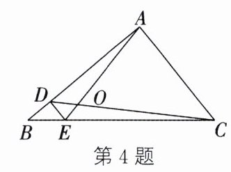 4. 如图,D,E 分别是△ABC 的边 AB,BC 上的点,DE//AC. 若$S_{\triangle DOE} : S_{\triangle COA} = 1 : 25$,则$S_{\triangle BDE} : S_{\triangle CDE} =$_________$. $