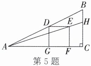 5. 如图,在 $\triangle ABC$ 中,$\angle C = 90^{\circ}$,$BC = 2$,$AC = 4$. 若正方形 $DEFG$ 的顶点 $D$ 在 $AB$ 上,顶点 $F,G$ 都在 $AC$ 上,射线 $AE$ 交边 $BC$ 于点 $H$,则 $CH$ 的长为