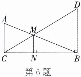 6. 如图,在 $Rt\triangle ABC$ 中,$\angle ACB = 90^{\circ}$,过点 $B$ 作 $BD \perp CB$,垂足为 $B$,且 $BD = 3$,连接 $CD$,与 $AB$ 相交于点 $M$,过点 $M$ 作 $MN \perp CB$,垂足为 $N$. 若 $AC = 2$,求 $MN$ 的长.