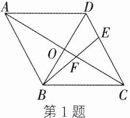 1. 如图,在菱形 $ABCD$ 中,AC,BD 相交于点 $O$,点 $E$ 在 $CD$ 上,且 $DE:EC = 1:2$,连接 $BE$ 交 $AC$ 于点 $F$. 若 $BD = 6$,$CF = 4$,则菱形 $ABCD$ 的边长为 (