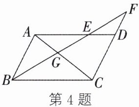 4. 如图,在$□ ABCD$ 中,$E$ 是 $AD$ 上一点,连接 $BE$ 并延长,交 $AC$ 于点 $G$,交 $CD$ 的延长线于点 $F$. 若 $DC = 2DF$,则$\frac{EG}{BG}$的值为 (