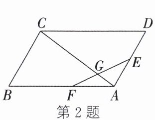 2. 如图,在$□ ABCD$ 中,$E$ 为 $AD$ 的中点,$AF:BF = 2:3$,则 $AG:GC =$