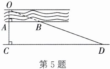 5. (教材 P40 例 5 变式)如图,为了估算河的宽度,小王在河对岸选定了一个目标点 $O$,在近岸取点 $A$,并取合适的一点 $C$,使 $O, A, C$ 三点共线,且线段 $OC$ 与河岸 $AB$ 垂直,接着在过点 $C$ 且与 $OC$ 垂直的直线上选择适当的点 $D$,使 $OD$ 与近岸所在的直线交于点 $B$. 若测得 $AC=30 m, CD=120 m, AB=40 m$,求河的宽度 $OA$.