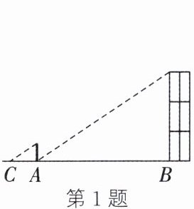 1. (教材 P39 例 4 变式)小明在测量楼高时,先测出楼落在地面上的影长 $BA$ 为 15 米(如图),然后在点 $A$ 处竖立一根高 2 米的标杆,测得标杆的影长 $AC$ 为 3 米,则楼高为 (