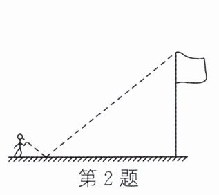 2. (教材 P43 习题 27.2 第 10 题变式)如图,为测量旗杆的高度,小菲在脚下水平放置一面镜子,然后向后退(保持脚、镜子和旗杆底端在同一条直线上),直到她刚好在镜子中看到旗杆的顶端. 已知小菲的眼睛离地面的高度为 1.6 m,小菲与镜子的水平距离为 2 m,镜子与旗杆的水平距离为 10 m,则旗杆的高度为 (