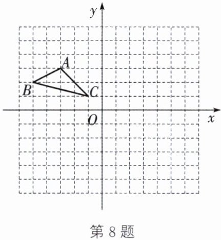 8. (教材 P50 练习第 2 题变式)在网格中,每个小正方形的边长均为 $1$,$\triangle ABC$ 在平面直角坐标系中的位置如图所示.