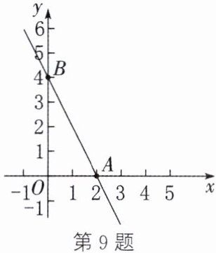 9. (新考法·新定义题)如果两个一次函数 $y = k_1x + b_1 (k_1 \neq 0)$ 和 $y = k_2x + b_2 (k_2 \neq 0)$ 满足 $k_1 = k_2$, $b_1 \neq b_2$,那么称这两个一次函数为“平行一次函数”. 如图,函数 $y = -2x + 4$ 的图象与 $x$ 轴、$y$ 轴分别交于 $A$, $B$ 两点,一次函数 $y = kx + b (k \neq 0)$ 与 $y = -2x + 4$ 是“平行一次函数”.