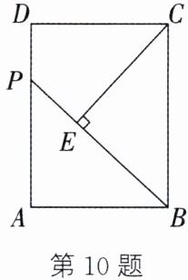 10. 如图,在矩形 $ABCD$ 中,$AB = 6$,$BC = 8$,$P$ 为边 $AD$ 上一动点,$CE \perp BP$ 于点 $E$,$BP = x$,$CE = y$,则 $y$ 关于 $x$ 的函数解析式为