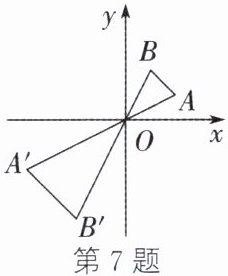 7. ($2025·$内蒙古)如图,在平面直角坐标系中,$\triangle OAB$的顶点坐标分别是$O(0,0)$,$A(2,1)$,$B(1$,$2)$,以原点$O$为位似中心,在第三象限画$\triangle OA'B'$与$\triangle OAB$位似.若$\triangle OA'B'$与$\triangle OAB$的相似比为$2$,则点$A$的对应点$A'$的坐标为 (