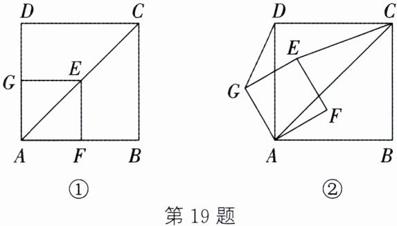 19. 已知点$E$在正方形$ABCD$的对角线$AC$上,正方形$AFEG$与正方形$ABCD$有公共点$A$.