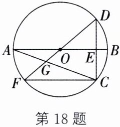 18. 如图,$AB$,$DF$为$\odot O$的直径,$C$为$\odot O$上一点,连接$CD$交$AB$于点$E$,连接$AC$交$DF$于点$G$,连接$CF$,$B$为$\overset{\frown}{CD}$的中点.