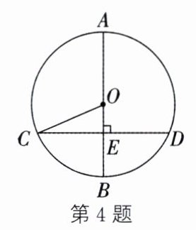 4. 如图,AB 是 ⊙O 的直径,CD 是 ⊙O 的弦,AB⊥CD,垂足为 E. 若 AB = 26,CD = 24,则 ∠OCE 的余弦值为