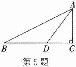 5. 如图,在 Rt△ABC 中,∠C = 90°,BC = 8,tan B = $\frac{1}{2}$,点 D 在 BC 上,且 BD = AD. 求 AC 的长和 cos ∠ADC 的值.