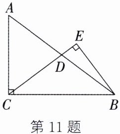 11. 如图,在 Rt△ABC 中,∠ACB = 90°,D 是边 AB 的中点,过点 B 作 BE⊥CD,交 CD 的延长线于点 E,AC = 15,cos A = $\frac{3}{5}$. 求: