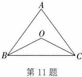 11. 如图,点$O$在$\triangle ABC$内,且到三边的距离相等,若$\angle BOC = 120^{\circ}$,则$\tan A$的值为