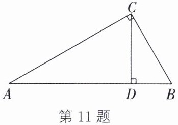 11. 如图,在 Rt$\triangle ABC$ 中,$\angle ACB = 90^{\circ}$,$CD \perp AB$ 于点$D$,$AD = 6\sqrt{3}$,$BC = 4\sqrt{3}$,写出解 Rt$\triangle ABC$ 的过程.