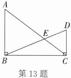 13. 如图,在 Rt$\triangle ABC$ 和 Rt$\triangle BCD$ 中,$\angle ABC = \angle BCD = 90^{\circ}$,$BD$ 与$AC$ 相交于点$E$,$AB = 9$,$\cos \angle BAC = \frac{3}{5}$,$\tan \angle DBC = \frac{5}{12}$. 求: