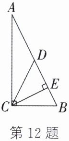 12. 如图,在 Rt$\triangle ABC$ 中,$\angle ACB = 90^{\circ}$,$CD$ 是$AB$ 边上的中线,$CE \perp AB$ 于点$E$,$BC = 2$,$\tan \angle ACD = \frac{1}{2}$. 求: