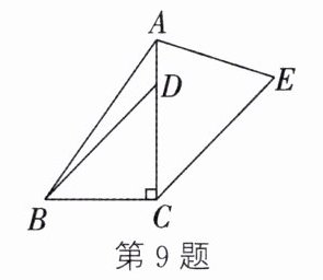 9. 如图,在 Rt$\triangle ABC$ 中,$\angle ACB = 90^{\circ}$,$BC = 2$,点$D$ 在$AC$ 上,连接$BD$,使得$BD = AC$,以$AC$ 为边向外作$\triangle ACE$. 若$CE // BD$,$\tan E = 2$,则边$AE$ 的长为