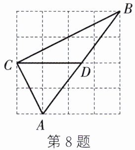 8. 如图,在$4×4$的网格中,每个小正方形的边长均为$1$,点$A$,$B$,$C$均在格点(小正方形的顶点)上,$D$是$AB$与网格线的交点,则$\sin\frac{\angle ADC}{2}$的值是