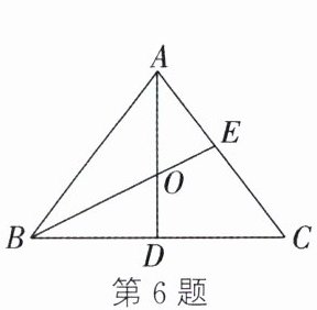 6. 如图,在$\triangle ABC$中,$O$是角平分线$AD$,$BE$的交点.若$AB = AC = 10$,$BC = 12$,则$\tan\angle OBD$的值是