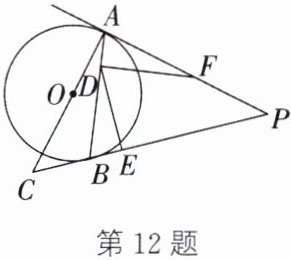 12.(2025·威海)如图,$PA$是$\odot O$的切线,$A$为切点. $B$为$\odot O$上一点,射线$PB$,$AO$交于点$C$,连接$AB$,点$D$在$AB$上,过点$D$作$DF\bot AB$,交$AP$于点$F$,作$DE\bot BP$,垂足为$E$.若$AD = BE$,$BD = AF$.