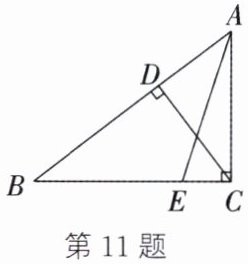 11. 如图,在$\triangle ABC$中,$\angle ACB = 90^{\circ}$,$CD\bot AB$于点$D$,$BE:AB = 3:5$.若$CE=\sqrt{2}$,$\cos\angle ACD=\frac{4}{5}$,求$\tan\angle AEC$的值及$CD$的长.