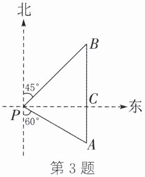 ∴BH = AB·cos B = 45海里,AH = AB·sin B = 45海里.在Rt△ACH中,CH = AH·tan∠CAH = $15\sqrt{3}$≈25.98(海里),
