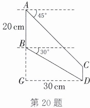 答案:21.(1)$135^{\circ}$ 解析:如图①,连接AE.$\because$点B关于直线AP的对称点为E,$\therefore AB=AE.\because$四边形ABCD是正方形,$\therefore AB=AD$,$\angle BAD=90^{\circ}.\therefore AB=AE=AD.\therefore\angle ABE=\angle AEB$,$\angle AED=\angle ADE.\therefore\angle ABE+\angle ADE=\angle AEB+\angle AED.\because\angle BAD+\angle ABE+\angle AEB+\angle AED+\angle ADE=360^{\circ}$,即$90^{\circ}+2(\angle AEB+\angle AED)=360^{\circ}$,$\therefore\angle AEB+\angle AED=135^{\circ}$,即$\angle BED$的度数为$135^{\circ}$.