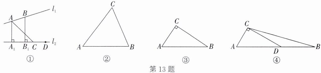 13. (新考法·新定义型题)如图①,平面内有两条直线$l_1$,$l_2$,点$A$,$B$在直线$l_1$上,点$C$,$D$在直线$l_2$