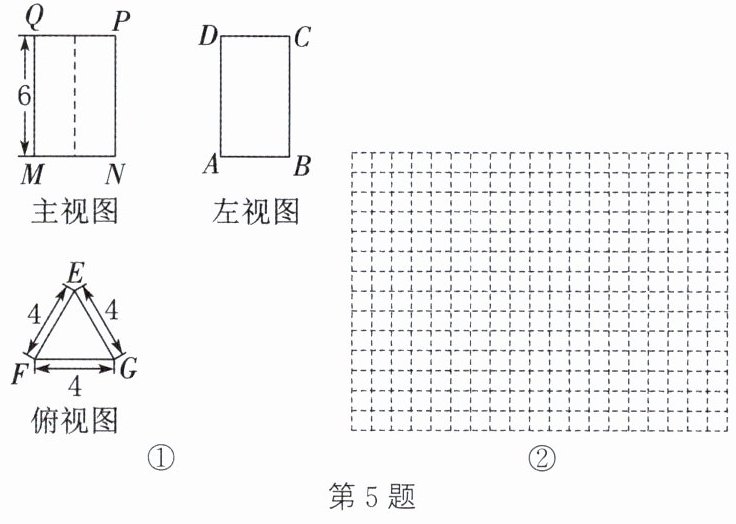 5. (1) 正三棱柱 72 (2) 展开图如图①所示(画法不唯一)