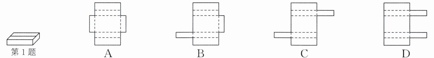 1. 有一种包装盒如图所示.若不考虑粘贴处的重叠部分,将下列展开图沿虚线折叠,则不能折叠成如图所示的包装盒的是 (