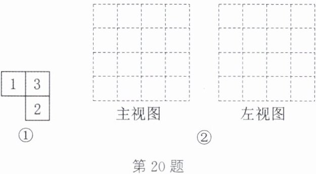 20. 由几个相同的棱长为 1 的小正方体搭成的几何体的俯视图如图①所示,小正方形中的数字表示该位置的小正方体的个数.