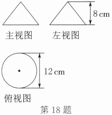 18. 如图所示为一个几何体的三视图,根据图中数据,这个几何体的侧面积是