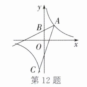12. 如图,双曲线$y=\frac{k}{x}(k \neq 0)$经过点$A(2,3)$,射线$AB$经过点$B(0,2)$,将射线$AB$绕点$A$按逆时针方向旋转$45°$,交双曲线于点$C$,则点$C$的坐标为