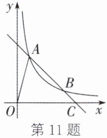 11. 如图,直线$AB$交函数$y=\frac{k}{x}(x>0)$的图象于$A,B$两点,交$x$轴于点$C$,且$AB=3BC$,连接$OA$. 若$S_{\triangle OAC}=\frac{15}{2}$,则$k$的值为